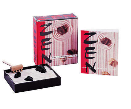 This carry-along version of our enormously popular Zen Gardening Kit provides a touch of tranquility on the go. Packaged with a 32page introduction to the aesthetic enlightenment of Zen gardening, it includes a tray, fine sand, decorative rocks, and miniature wooden rake.