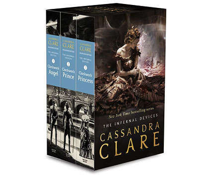All three books in the #1 "New York Times "bestselling Infernal Devices trilogy, are now available together in a collectible paperback boxed set. Passion. Power. Secrets. Enchantment. Enter the secret world of the Shadowhunters with this handsomely packaged boxed set that includes "Clockwork Angel," "Clockwork Prince," and "Clockwork Princess." The villainous Mortmain and his terrifying clockwork army are on the move to destroy the Shadowhunters. Can Tessa, Jem, and Will stop his infernal plot? This complete collectible set of three paperback volumes is a perfect gift for newcomers to the series and for loyal fans alike.