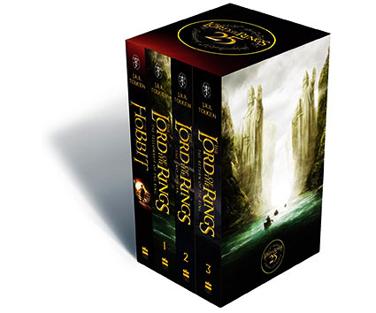 This new 4-book boxed gift set, published to celebrate the 25th anniversary of the first of Peter Jackson’s award-winning Lord of the Rings film trilogy, contains the complete work plus its prequel, The Hobbit, reissued with covers featuring iconic film images. The quartet of books offers readers a new opportunity to discover Tolkien’s remarkable world of Middle-earth and to follow the complete story of Bilbo Baggins and the Hobbits’ part in the epic quest for the Ring – beginning with Bilbo’s fateful visit from Gandalf and culminating in the dramatic climax between Frodo and Gollum atop Mount Doom.